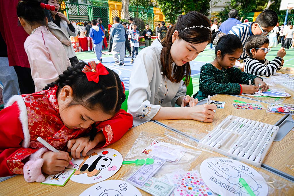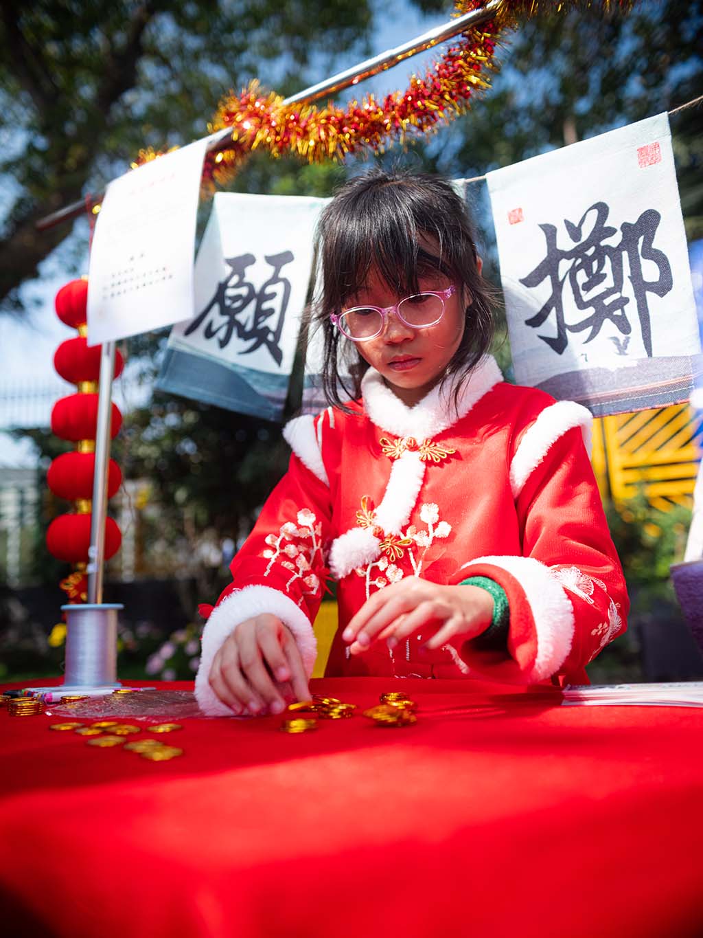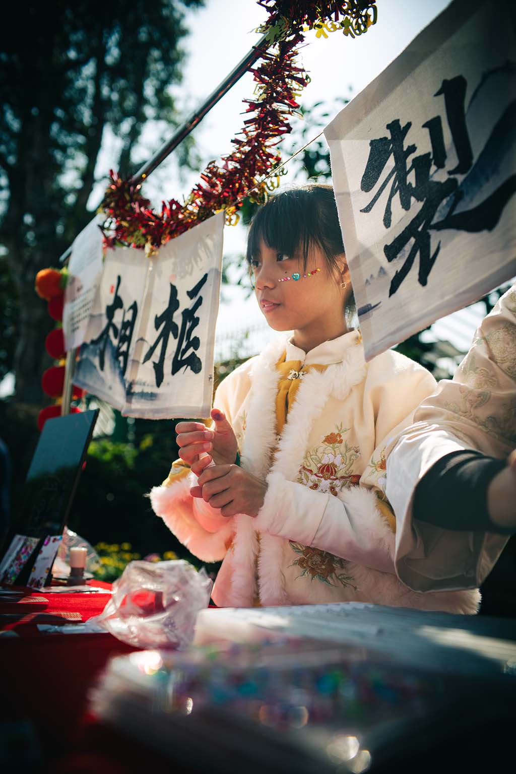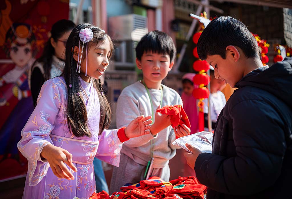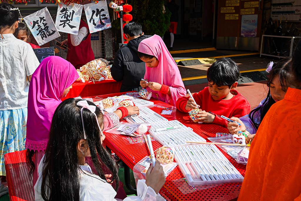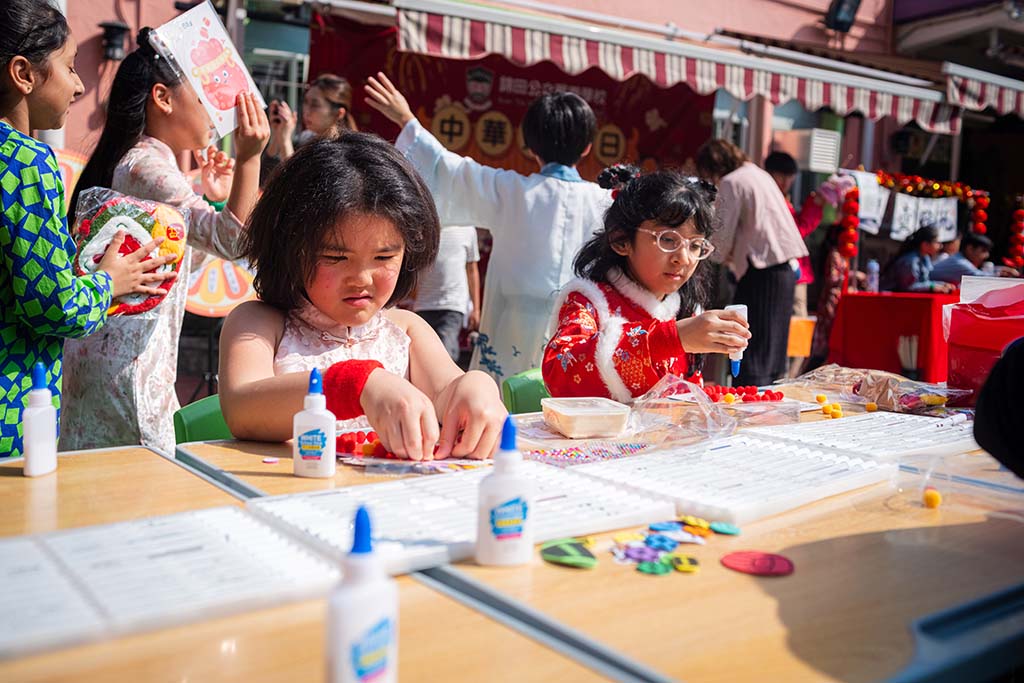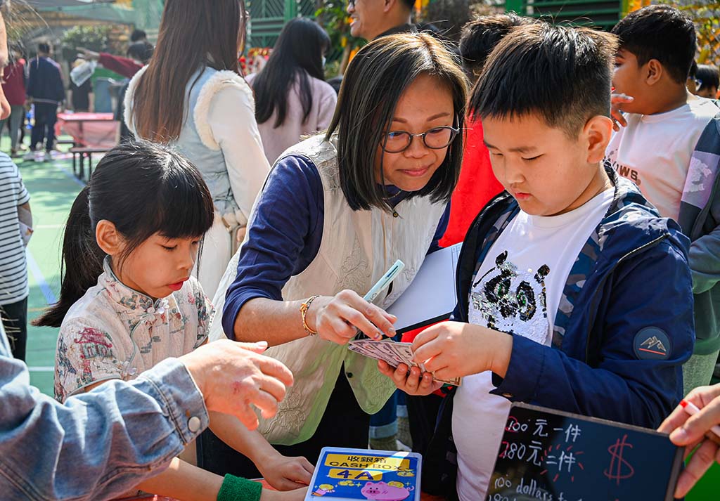 我們二年班的攤位特別熱鬧,我們賣的是手工藝品,有貼上舞獅頭裝飾的小燈籠和可愛的賀年襪子。同學和老師們都紛紛過來選購,賣得可是非常火熱呢!我負責收銀,每當有顧客購買商品的時候,我們都特別開心,感覺自己像個小店長。