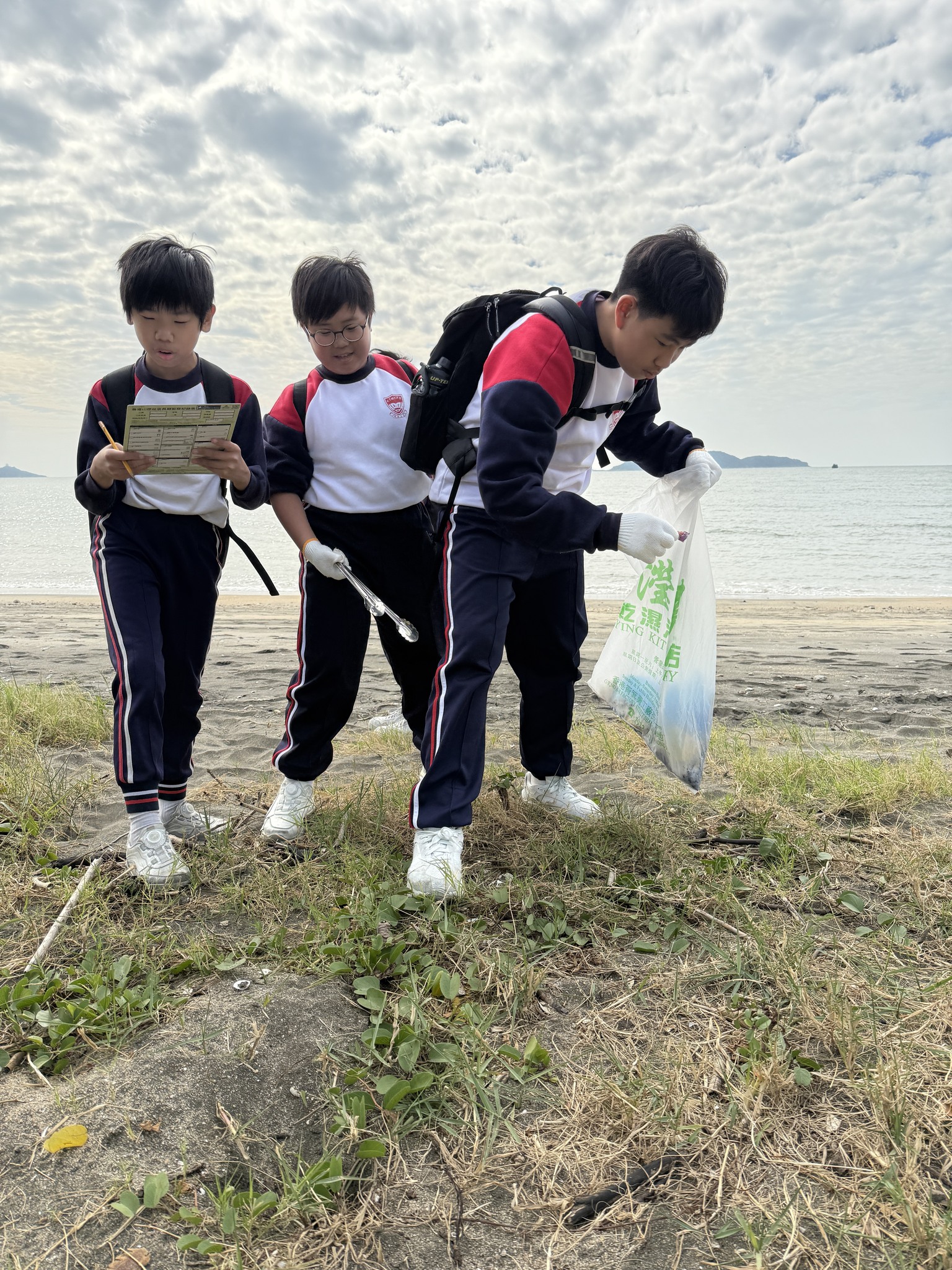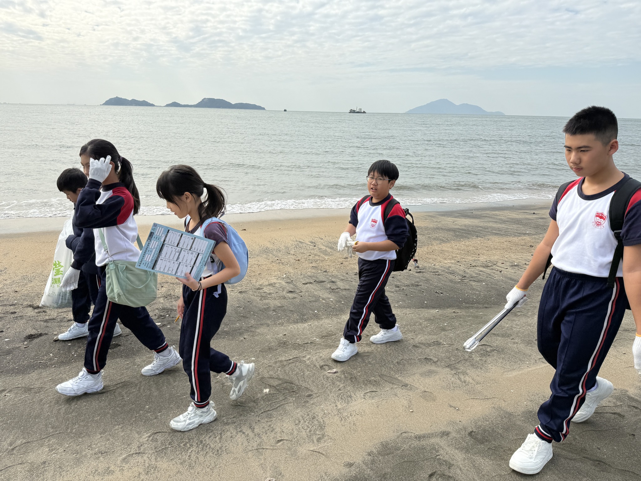在沙灘上,同學們紛紛動手執拾垃圾,讓海灘恢復潔淨。他們明白,清澈的海水和潔白的沙灘需要我們共同努力來維護。