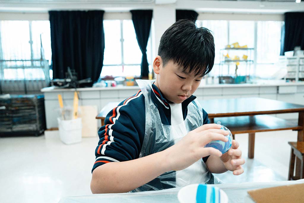 同學透過流體畫技術,釋放創意,隨著顏色料在作品中流淌,感受藝術的無窮魅力。