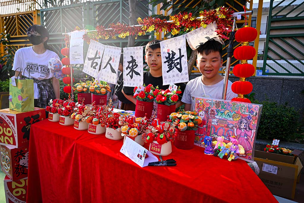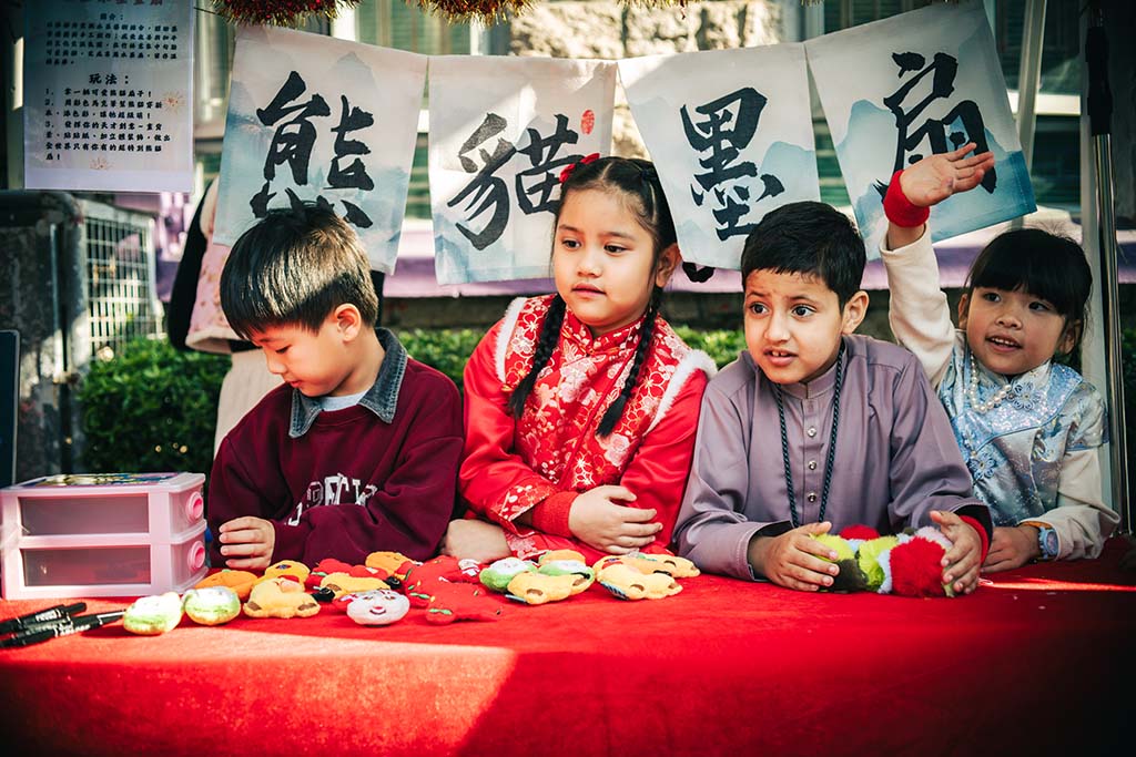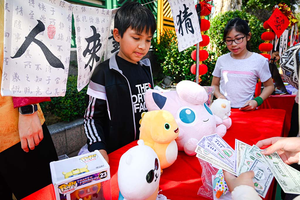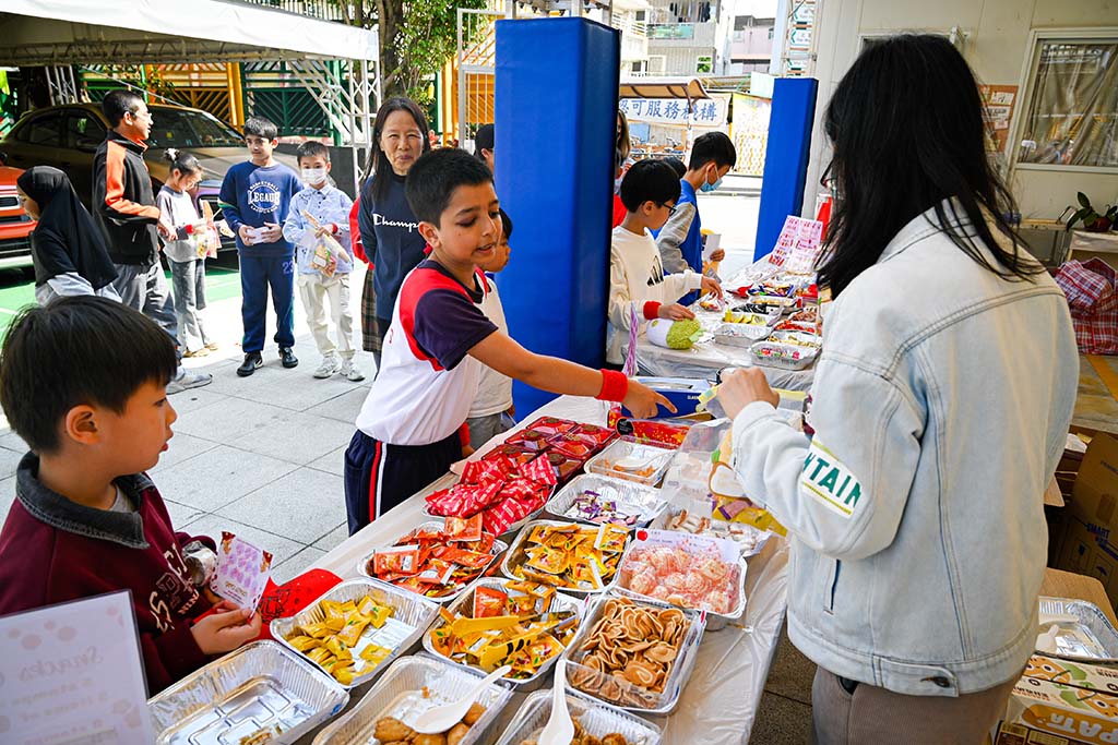 我們二年班的攤位特別熱鬧,我們賣的是手工藝品,有貼上舞獅頭裝飾的小燈籠和可愛的賀年襪子。同學和老師們都紛紛過來選購,賣得可是非常火熱呢!我負責收銀,每當有顧客購買商品的時候,我們都特別開心,感覺自己像個小店長。