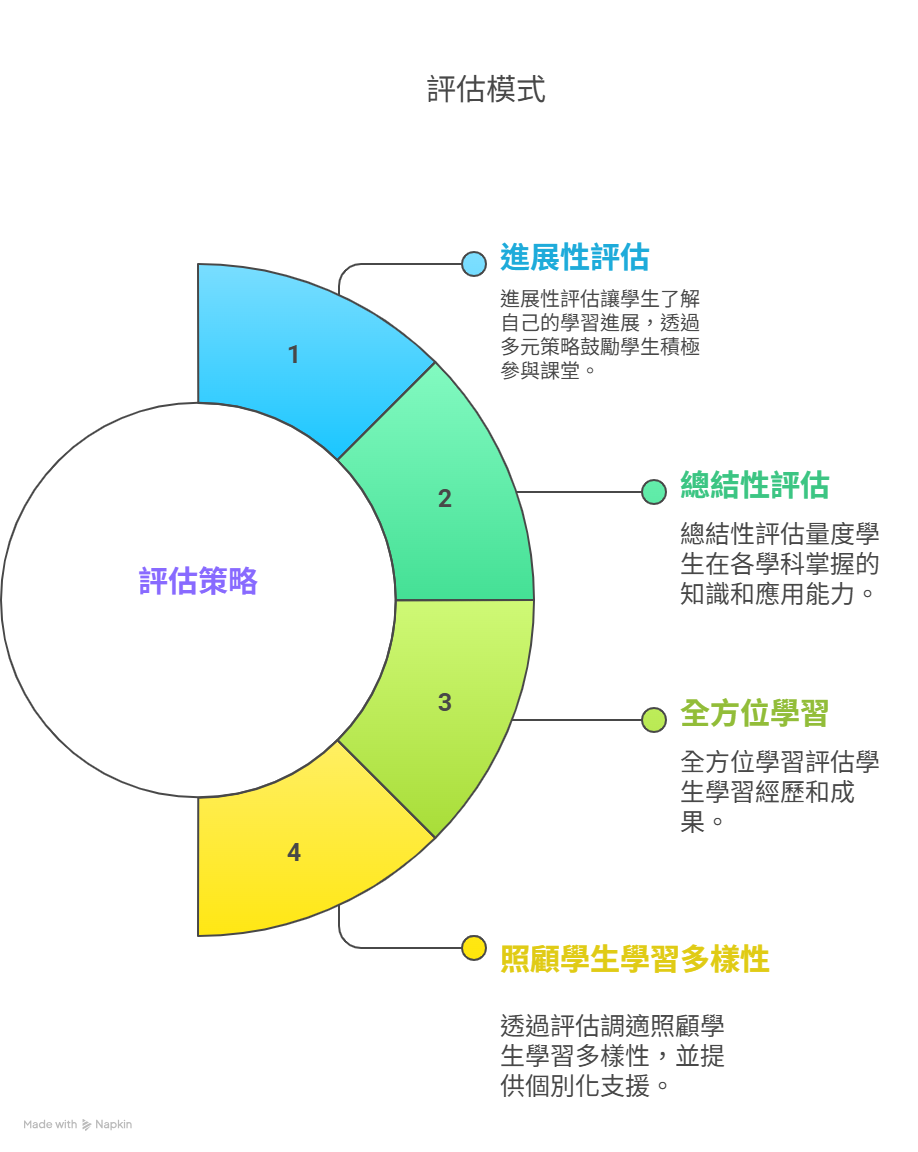 教師根據評估目的、學習目標和過程,設計合適的多元化的評估方式。